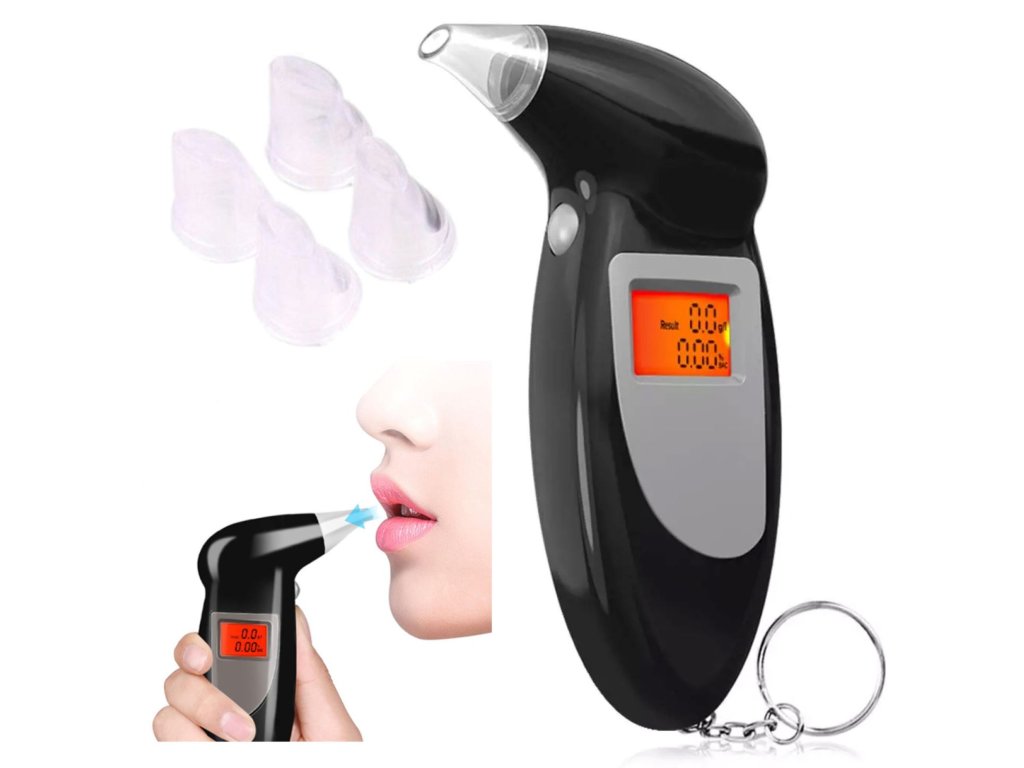 Alkohol tester s vymeniteľnými náustkami a 5 špičkami LCD - čierny